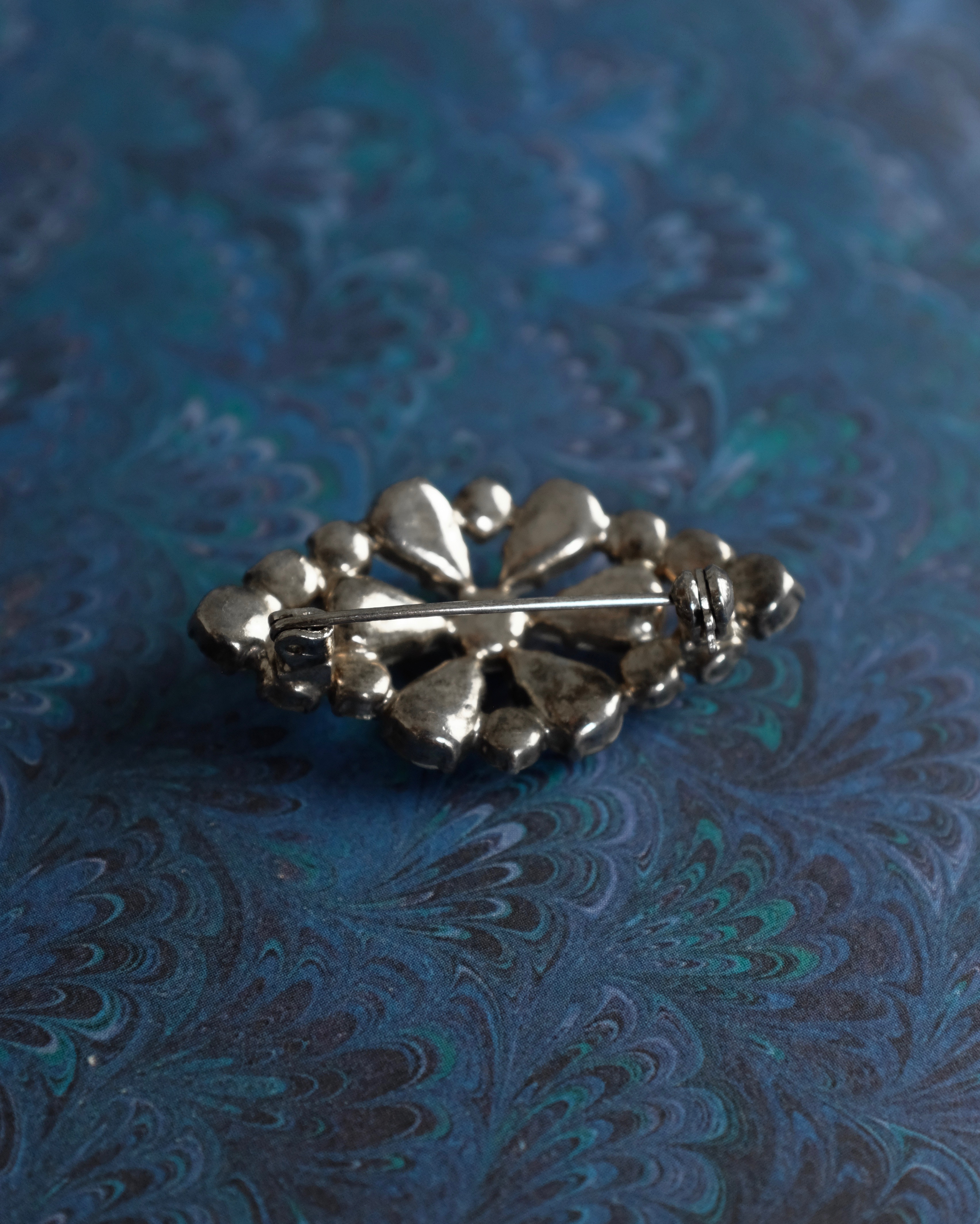 Magnifique broche ancienne en forme de losange, avec attache de sécurité. À porter sur une veste, un chapeau ou sur les cheveux en demi-queue.
