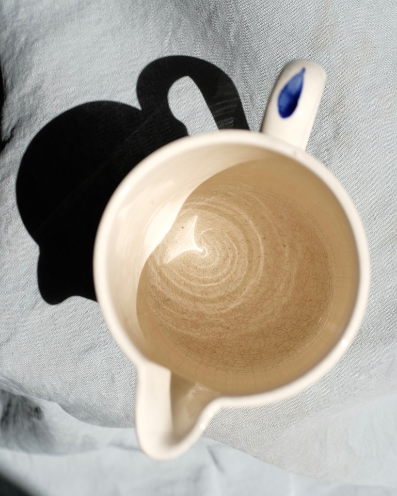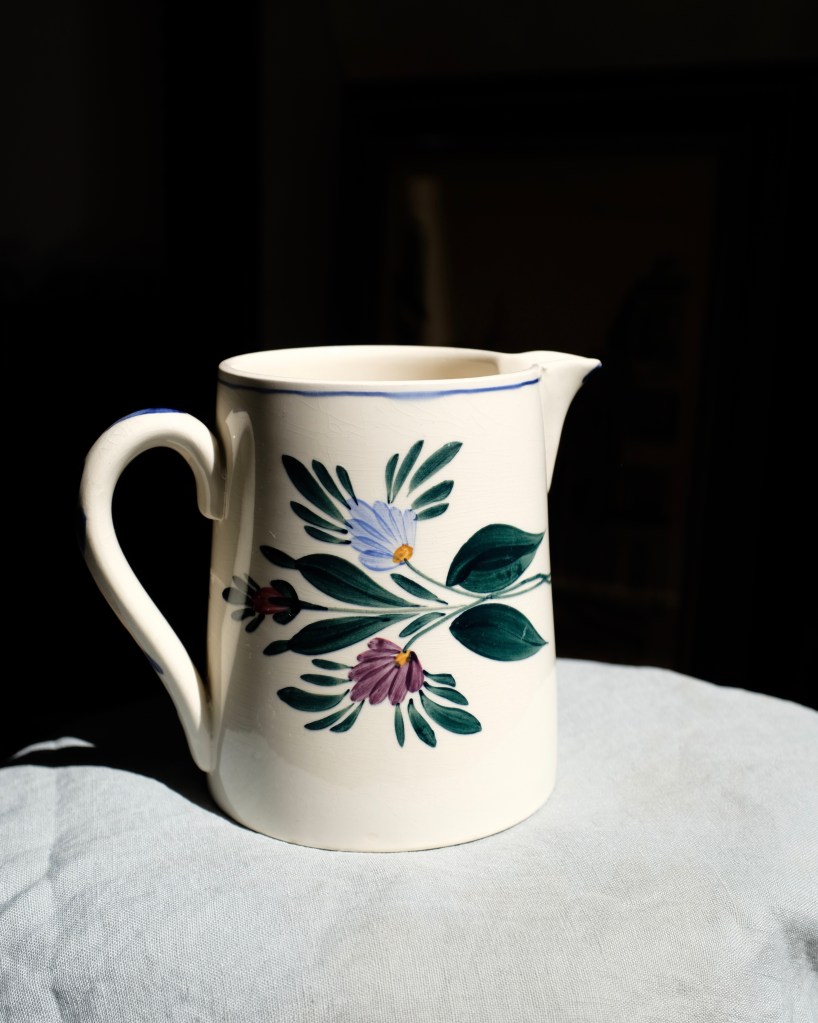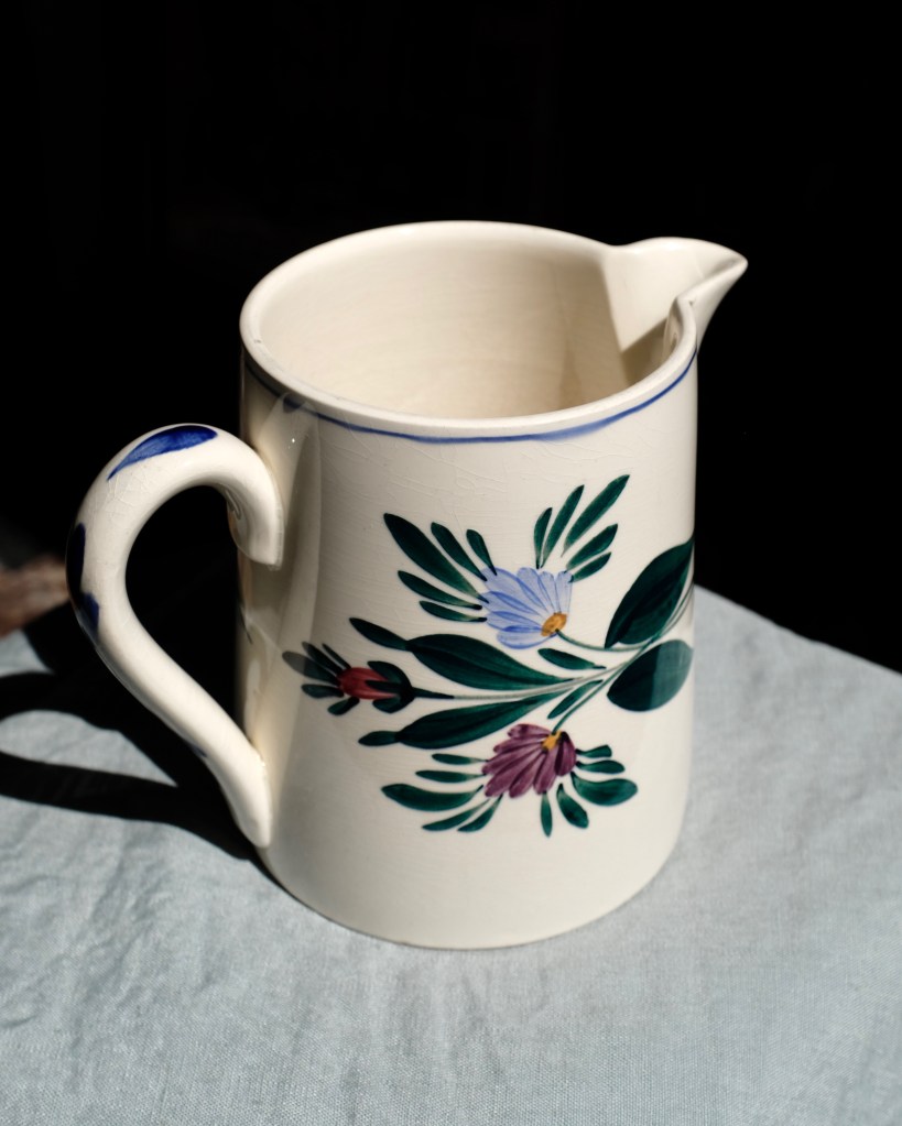 Pot à lait en faïence de Sarreguemines – décor « Forêt des Vosges » peint à la main – années 1920. Modèle rare.