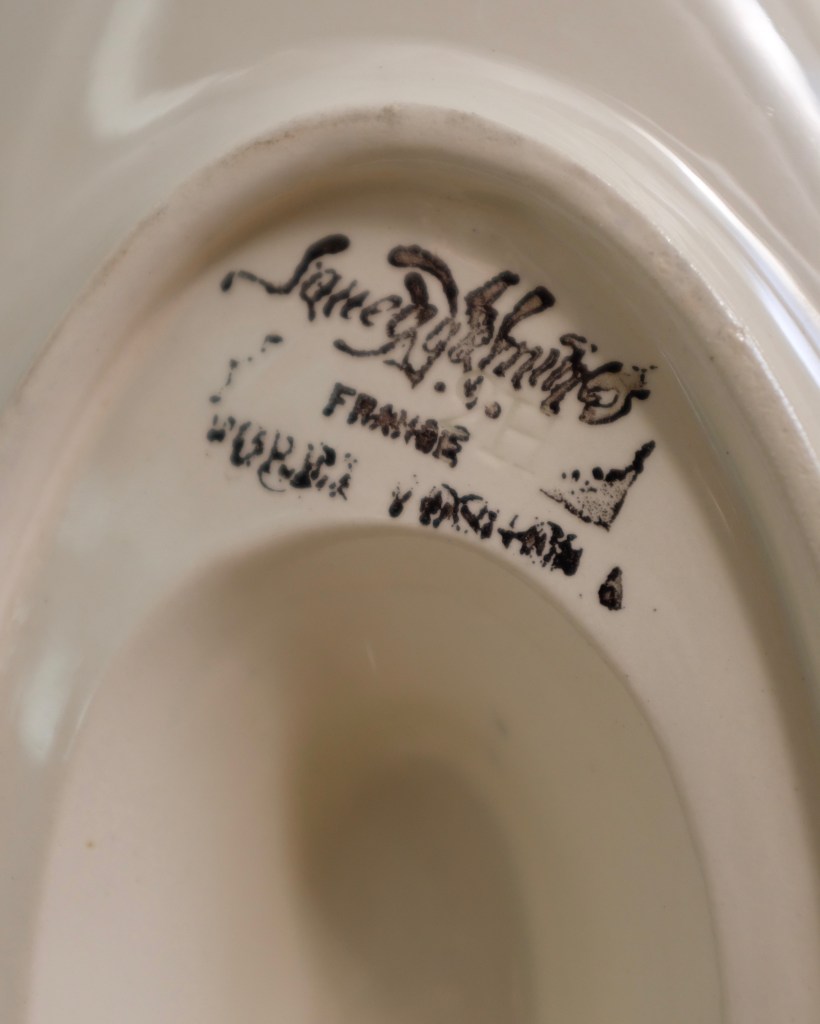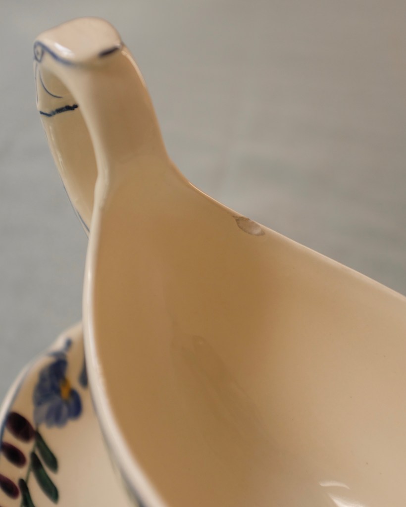 État : bon état général. Petite fissure sur le bord de la saucière (voir dernière photo ci-dessous).