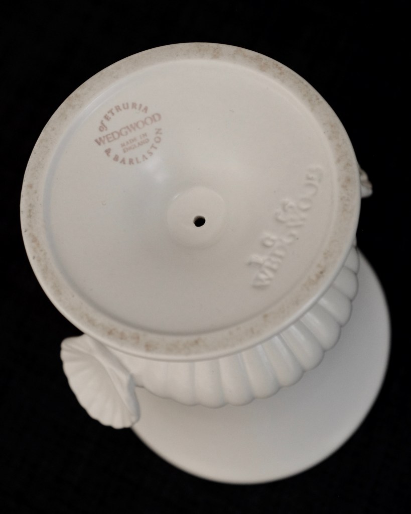 Le vase date probablement des années 1950 ou 1960 et est estampillé « Wedgwood & Barlaston of Etruria, Made in England ». La marque, qui est imprimée en couleur sur la base, a été introduite pour la première fois en 1940.